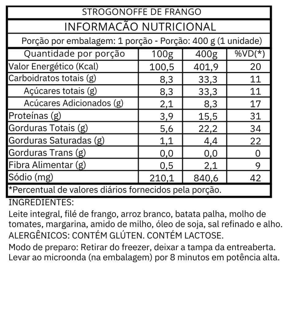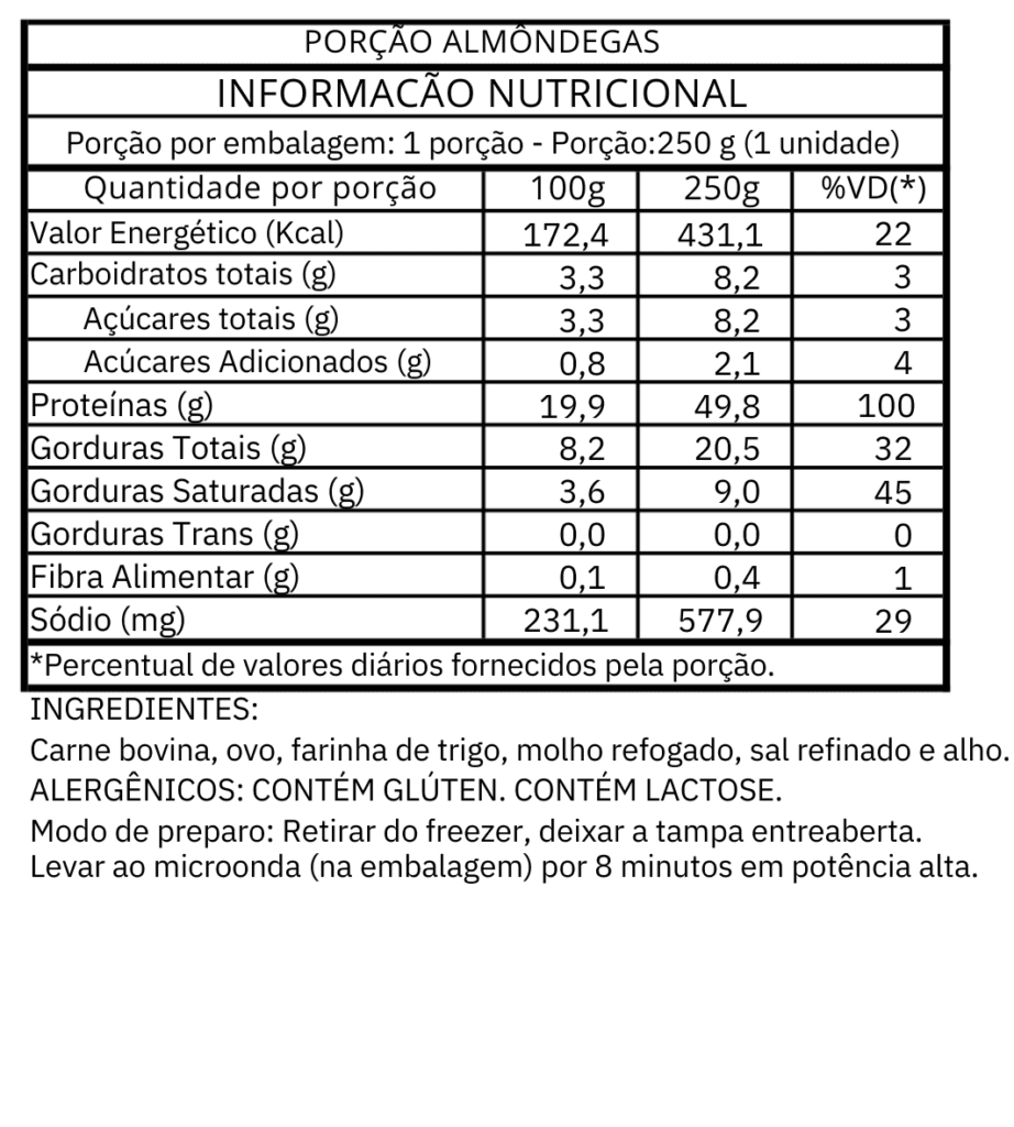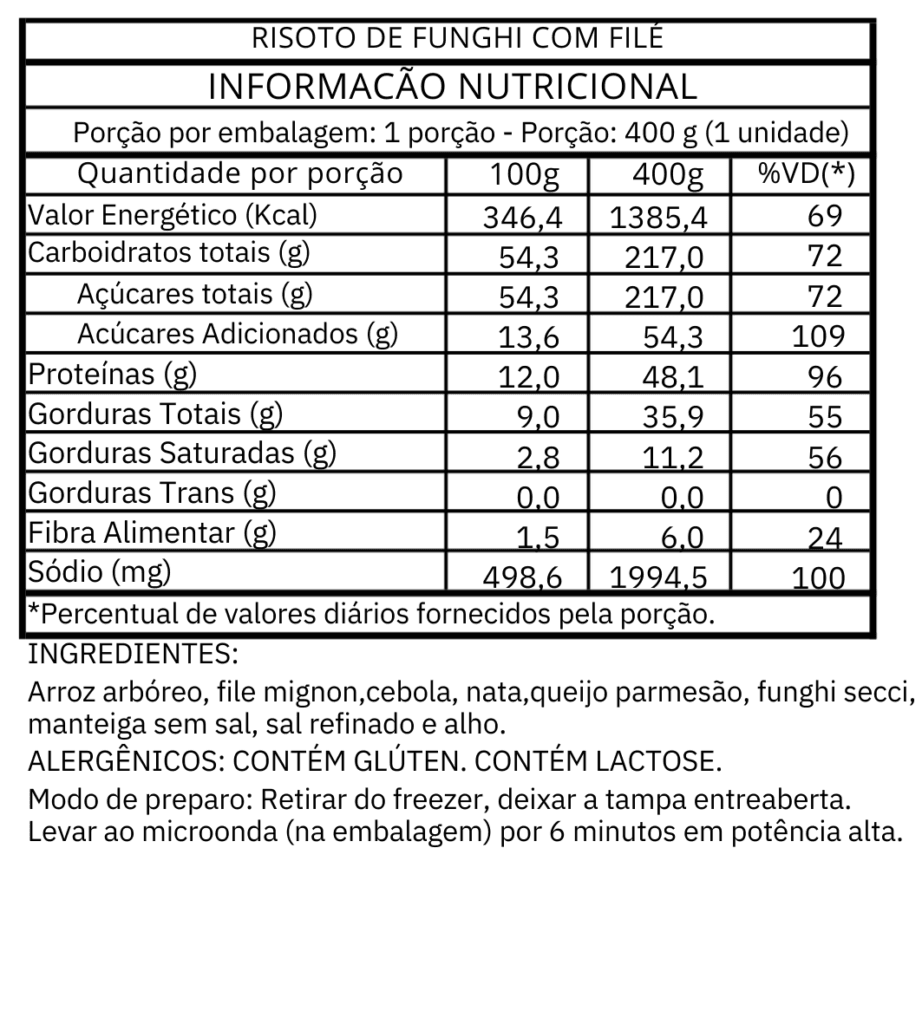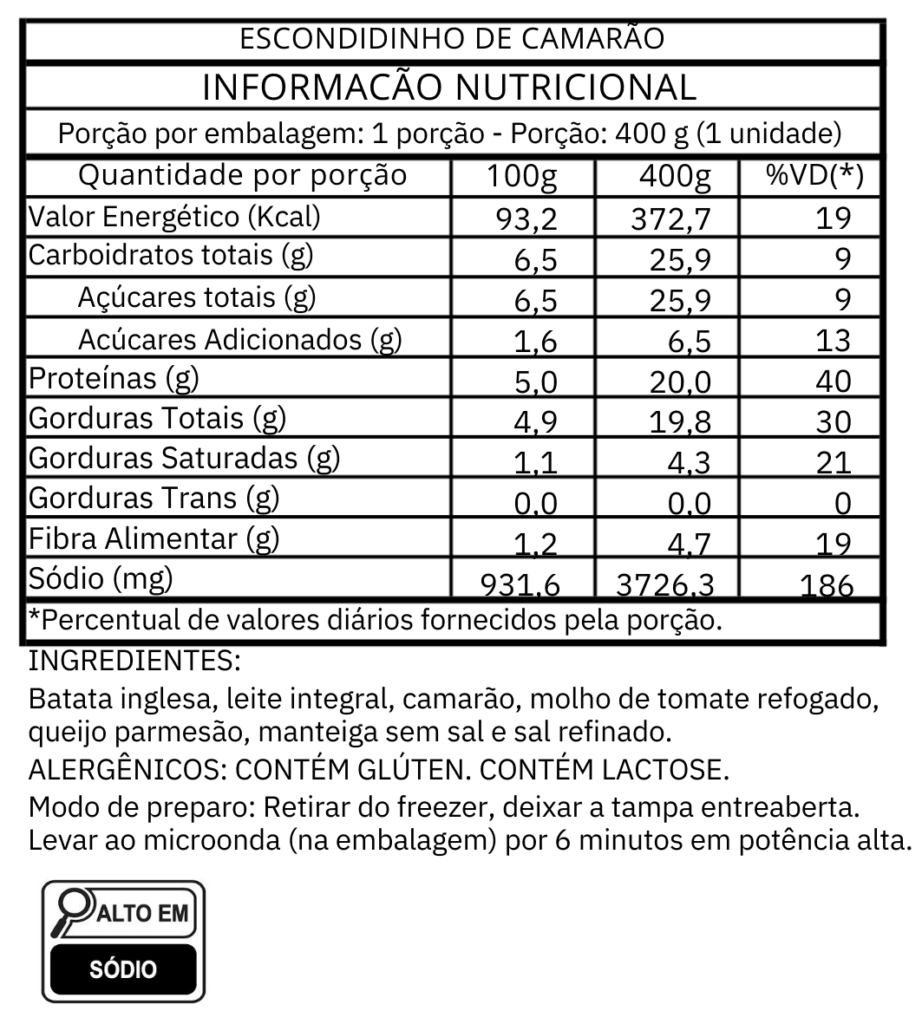 Aqui você encontra todas as tabelas nutricionais do nosso cardápio.